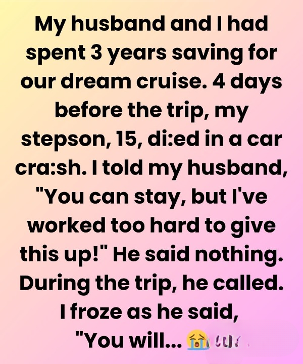“I didn’t know how to show up for grief I wasn’t allowed to own,” I said. “He wasn’t my son. I thought staying out of the way was the kindest thing. The cruise felt like the only thing I could control. I was wrong.”