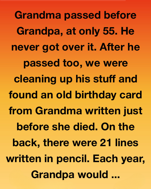 But when Carla flipped the card over, we saw faint pencil writing on the back. Twenty-one lines. Each one short. Honest. Intimate. One for each year that would follow after she was gone — as if she somehow knew exactly how long he’d be living without her.