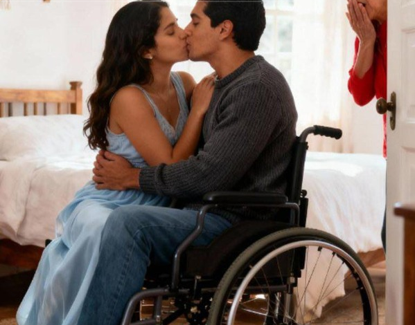 His arms were wrapped around a young woman, also in a wheelchair, their mouths locked in a desperate, hungry kiss.