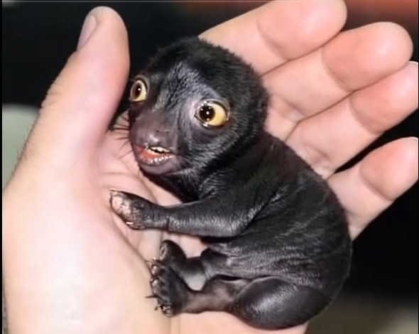 Rescuers at the Heart of the Forest animal center were taken aback when they received an extraordinarily tiny, black-furred creature, unlike anything they had encountered that day. Its unusual appearance immediately sparked curiosity among the staff. At first glance, even seasoned wildlife experts hesitated to identify it. The newborn was so small that it fit entirely within the palm of a hand, its fragile limbs quivering as it struggled to adjust to the unfamiliar surroundings. Its features were soft and indistinct, almost blurred, making it nearly impossible to determine what species it belonged to.