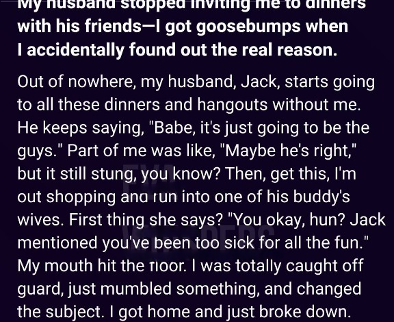 My husband suddenly stopped asking me to come along when he went out with his friends. When I eventually discovered why, my whole body went cold.