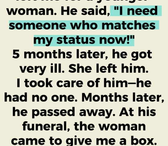 Five months later, I received a call from one of his former colleagues. The man who once carried himself with confidence and arrogance was gravely ill. And the younger woman he’d left me for? She disappeared the moment life stopped being exciting. His friends vanished too. The man who believed he deserved “more” suddenly had no one.