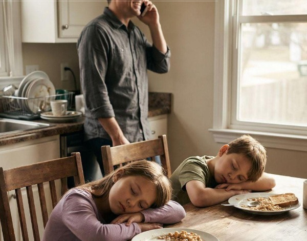 Ethan moved around the kitchen like he was putting on a show. He hummed under his breath, wiped the counters again and again, and brought out the plates we usually reserved for special occasions. He even poured my son, Caleb, a glass of apple juice, smiling in a way that felt practiced rather than warm.