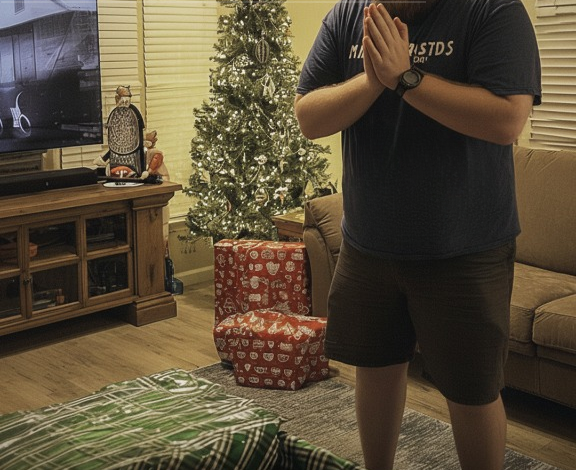 All twelve of us — grandparents, aunts, uncles, cousins — gathered around the tree. Seth and I sat on the couch, trying not to laugh too soon. One by one, presents were opened: socks, gift cards, ugly sweaters everyone pretended to love.