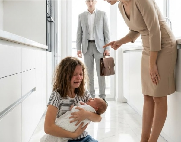 I ran. The playroom door was cracked open. Inside, Ava sat on the floor, her dress torn and stained, clutching Lucas tightly. His cries were weak. Patricia stood over them, elegant in red, holding a bottle.