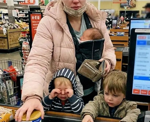 She couldn’t have been more than twenty-five. A janitor’s uniform hung loosely, name badge reading Allison. A toddler screamed from the cart, a preschooler clung to her leg, a baby squirmed in a carrier strapped to her chest. Her hands shook as she counted coins, holding a single can of formula like it might vanish.