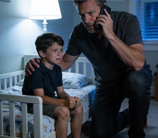 Michael felt a wave of anger and fear. Carefully, he inspected Lucas’s body. Dark bruises, long marks, and even a small burn confirmed what he feared. “This isn’t okay,” he said. He documented the injuries and dialed 911.