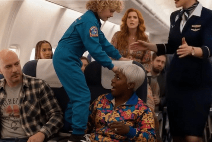 The woman in the seat, Amara, eventually turned around. Her voice was calm. No accusation. Just a simple request for the kicking to stop. What followed was not dismissal alone. It was hostility. Sharp remarks. A sneer. Then something worse. Something that made nearby passengers fall silent and stare at their trays.