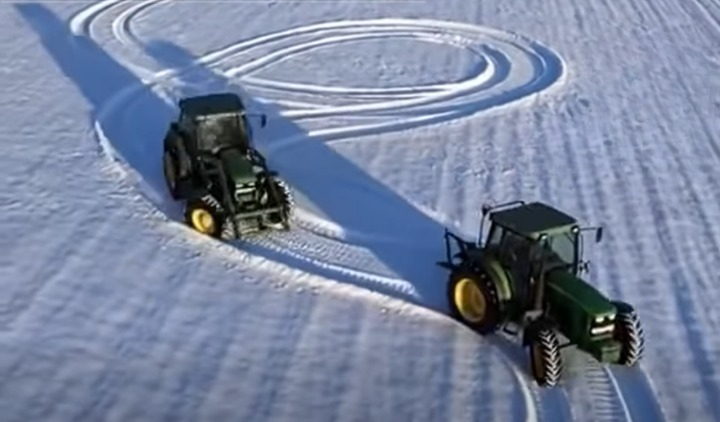 The process behind “Deere Tracks” was remarkably simple and entirely manual. Adam later explained that nothing about it was automated. No GPS systems guided the tractor. No outlines or markers were placed in the snow. Before filming began, Adam walked the path himself, imagining each curve and spacing out the letters in his mind. When the time came, Dan relied on decades of experience behind the wheel to turn that mental plan into reality. What resulted was a form of tractor snow art that many people had never seen or even imagined before the Pruntys shared it online.