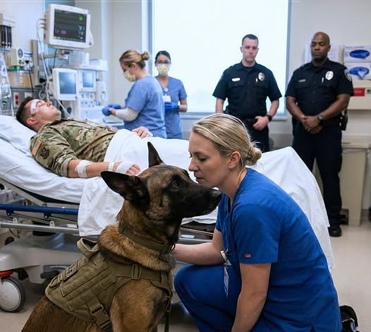 Doctors stood frozen when the K-9 refused to budge — until a young nurse quietly spoke a code that changed everything.