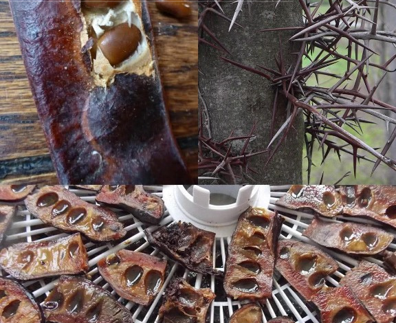 The real value of the Honey Locust is hidden inside its long, reddish-brown seed pods that fall to the ground in the fall. Crack one open and you will find a thick, sticky pulp surrounding the seeds.