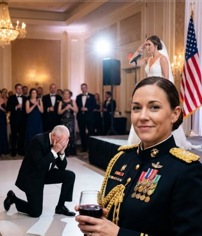 Across the polished floor, the bride of the Davis family brought her heels together and delivered a flawless military salute.