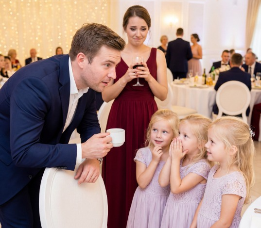 A Widowed Man Sat Alone at a Wedding Until Three Little Girls Whispered, “Just Pretend You’re Our Dad” — What Began as a Favor Became the Family He Never Planned For