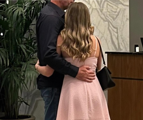 Kellan stood near the elevators with a woman.