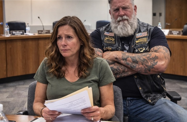 “Public meeting,” the biker interrupted calmly. “Posted on the district website. Open to community members. We’re community members.”