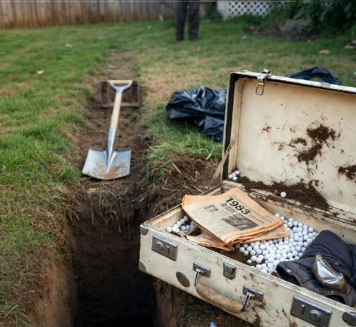 We refilled the hole, placed the suitcase back inside carefully, then covered it with fresh soil.