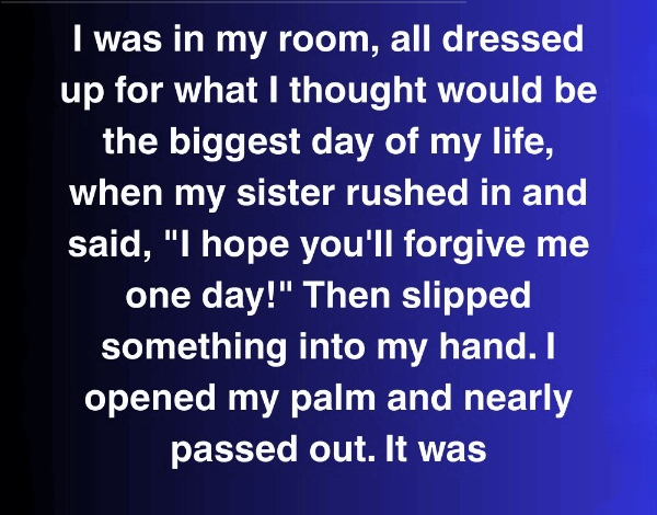 I was standing in my room, fully dressed for what was supposed to be the happiest day of my life, when my sister burst through the door, eyes wide and wet. “I hope you’ll forgive me one day,” she blurted, then pressed something into my hand. I looked down. It was a man’s wedding band. But it wasn’t my fiancé’s. Inside, engraved in neat letters, were the initials “L.A. + R.S.” and a date I didn’t recognize. My fingers went numb. My dress suddenly felt like it was strangling me. A cold sweat broke out on the back of my…