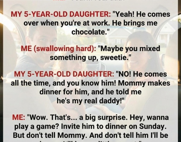 The first time Lily mentioned it, I laughed it off. It sounded like one of those odd, innocent things children say without understanding the weight of their words. We were driving home from daycare when she asked suddenly, “Daddy, can we invite my real dad to dinner on Father’s Day?” My grip tightened on the steering wheel, but I forced a light laugh and asked what she meant. Lily, only five, kicked her feet happily and explained: a man sometimes came over while I was at work. He brought her chocolate, sat with Mommy while they talked, and told Lily…