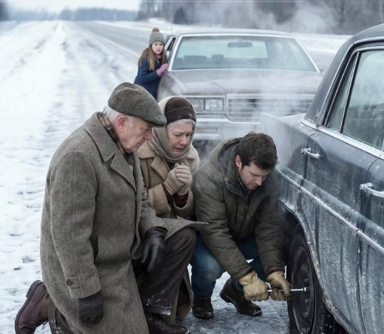 The first flakes of winter dusted the highway like powdered sugar. I was driving to my parents’ countryside home with my seven-year-old daughter, Clara, singing along to her favorite songs. Her mother had left years ago, so it had been just the two of us, making our little routines sacred. Then I noticed an old sedan pulled over. Smoke—or fog—rose from the engine. Beside it, an elderly couple struggled with a flat tire, bundled in thin coats. “Clara, stay in the car,” I said. She nodded, curious but cautious. I knelt beside the tire, helping loosen the frozen lug nuts.…