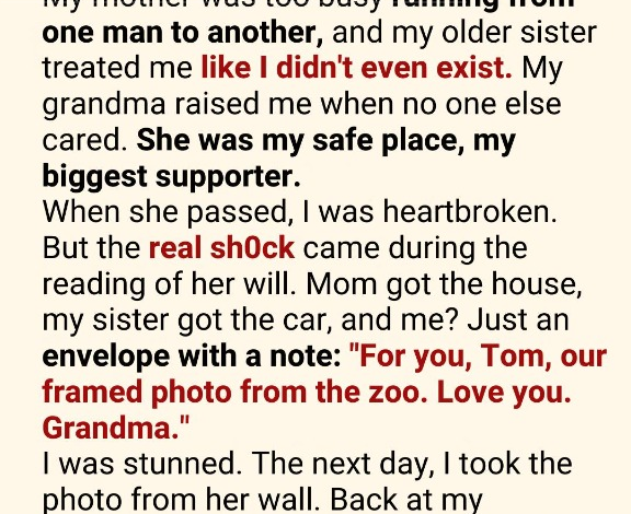 When my grandmother Grace passed away, I was convinced I had been left behind. At the reading of the will, my mother practically jumped up before the lawyer finished describing the house. My sister Cynthia grabbed the car keys as though they had always belonged to her. Everyone walked out with something tangible, something impressive — something they could show off. Then the lawyer turned to me. He handed me a thin package and offered a gentle, almost apologetic smile that made my stomach tighten. Inside was a single framed photograph: Grandma and me at the zoo when I was…