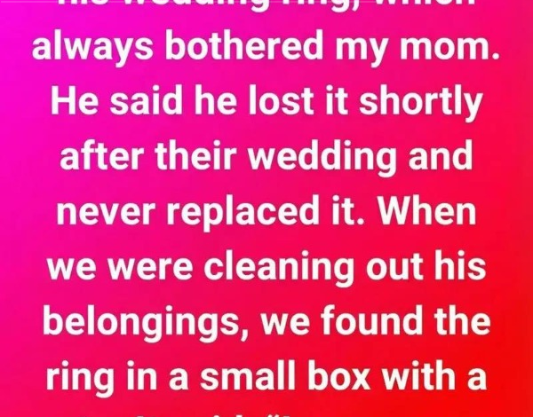 Going through a loved one’s belongings is like opening chapters of their life you never knew existed. After my dad passed, we expected the usual assortment of items—old jackets, worn tools, faded receipts. But tucked away in a small, unassuming box was something that completely reshaped what we thought we knew about him. Inside lay his wedding ring, carefully wrapped in soft cloth, alongside a handwritten note that began: “I didn’t wear it because…” Those few words drew us into a truth none of us had anticipated. What we had assumed was forgetfulness turned out to be a quiet, deliberate…