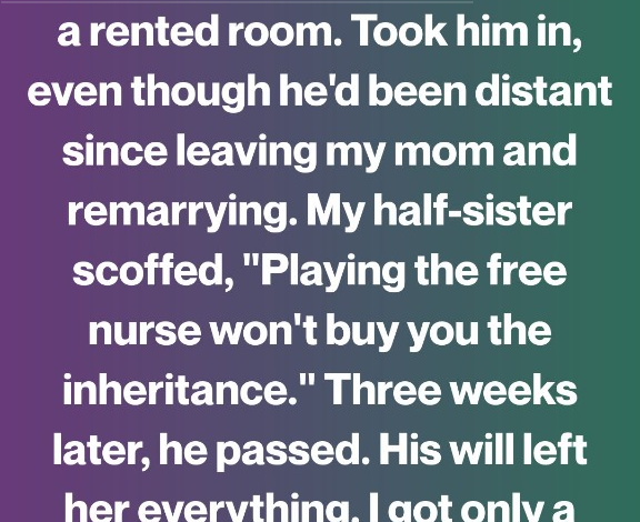 I discovered by chance that my father had spent his final weeks alone in a small rented room on the outskirts of town. A neighbor mentioned it casually—an elderly man who rarely went outside, who had no visitors. When she said his name, a tightness settled in my chest. He hadn’t truly been a father to me for a long time. After he left my mother, he built a new family and gradually drifted out of my life. Calls became infrequent. Conversations turned cautious and distant. Even so, when I learned he was seriously ill—terminally so—I didn’t hesitate. I brought…