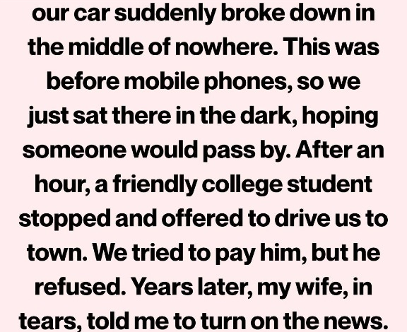 Our Car Broke Down at 2 A.M.—Years Later, the Stranger Who Helped Us Appeared on the News and Left Us Speechless