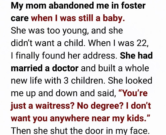I don’t remember the day my mother left me. I was just a baby, handed to strangers, placed in foster care because she was too young and afraid to keep me. Growing up, I learned to live with fragments instead of answers. Homes changed, rules changed, people came and went. Stability never lasted, and I learned early not to expect much. Love felt fragile and temporary. When I was twenty-two, curiosity outweighed fear. I tracked her down, rehearsed what I would say, and knocked on her door. She looked at me like I didn’t belong—polished, confident, surrounded by the family…