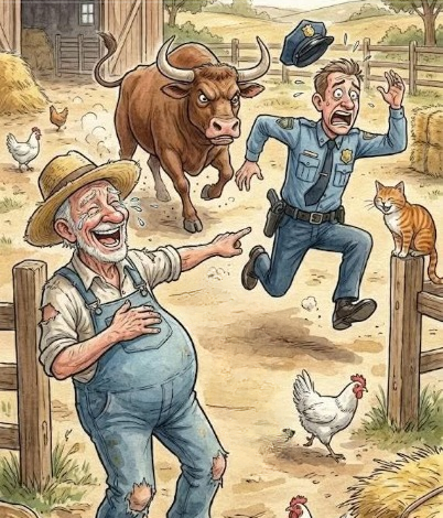 The officer arrived at the ranch with the confidence of someone who assumed the outcome was already determined. He moved with the certainty of a man used to doors opening on command and arguments ending the moment he spoke. His suit was immaculate, boots barely scuffed, and the badge clipped to his belt gleamed in the sunlight every time he shifted. It wasn’t just identification—it was a symbol of power, proof that rules bent when he decided they should. The rancher watched him from the shade of the barn, leaning against a post worn smooth over decades. He didn’t hurry.…