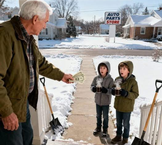 The doorbell rang at exactly seven on a bitter Saturday morning, slicing through the quiet like a knife. I was annoyed. Saturdays were sacred—especially in winter—the only chance to sleep in after a long week. I pulled on a sweatshirt, rehearsing a sharp greeting for whoever dared disturb me. I opened the door. Nobody was there. Just the cold, rushing inside like it had been waiting. Snow lay thick on the ground, crunching under boots, stinging fingers within seconds. At the edge of my driveway stood two boys—maybe thirteen and ten—shovels almost as tall as they were. Their cheeks were…