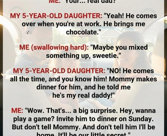 The first time Lily said it, I brushed it off with a laugh. It sounded like one of those odd, innocent comments kids make without grasping what they mean. We were driving home from daycare, traffic inching along, the radio playing softly, when she spoke up from the back seat. “Daddy, can we invite my real dad to dinner on Father’s Day?” My grip tightened on the steering wheel. I forced a laugh that felt hollow and asked her what she meant. Lily was five, relaxed, swinging her legs against the car seat, completely unaware that my world had just…