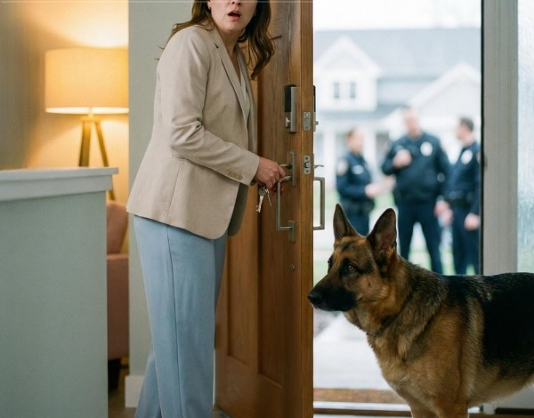 At exactly 7 a.m., my dog, Ranger, refused to let me leave the house. Thirty minutes later, police surrounded my street and told me that if I had walked out that door, I would not have survived. My name is Laura Bennett, and I’m sharing this story because Ranger—a dog who had never once defied me in six years—did something extraordinary that morning. The day began like any other. My alarm went off at 6:30 a.m., and I hit snooze twice before dragging myself out of bed. I made coffee, packed my work bag, and prepared for a typical workday…
