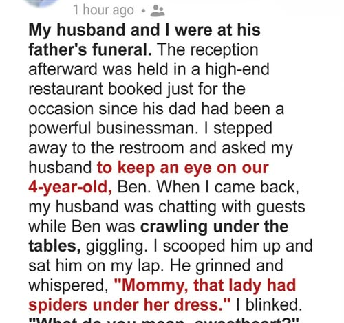 They say children see the world with unfiltered eyes, often noticing truths that adults spend years trying to ignore. I experienced this on one of the most heart-wrenching days of my life: my father-in-law’s funeral. He was a man I had always admired, and the grief surrounding his passing was suffocating. The air hung heavy with sorrow as friends and family gathered in hushed conversation, offering gentle condolences, their eyes red from tears. My four-year-old…