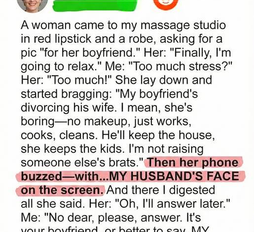 I used to think cheating was something that happened in other people’s lives. People who were reckless. People who stopped caring. People whose marriages were already broken in obvious ways. I never thought it would reach into mine. I believed my husband and I had built something solid, something that could handle stress and time. But one perfectly normal morning, a woman walked into my massage studio and unknowingly destroyed every illusion I still clung…