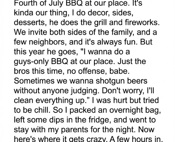 For many years, our Fourth of July barbecue was far more than a simple holiday gathering for my husband and me. It had become a steady rhythm in our shared life, a tradition that grew naturally over time and marked the true beginning of summer for us. I took pride in handling every detail, from the festive decorations to the carefully prepared homemade side dishes and the dessert table that everyone looked forward to. My…