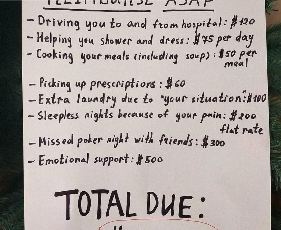 After my surgery, I discovered an itemized bill charging me for “taking care of me” taped to the fridge — so I decided to teach my husband a lesson in return