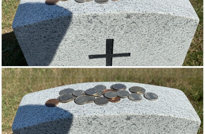 The quiet of a military cemetery carries a unique weight. Rows of identical white headstones stand in careful alignment across gently rolling green hills, creating a scene that feels both solemn and reverent. To someone passing through, it may appear simply beautiful in a restrained, historical way. But for those who look more closely, small details begin to reveal themselves. Resting on some headstones are tiny flashes of metal — a penny, a nickel, a…