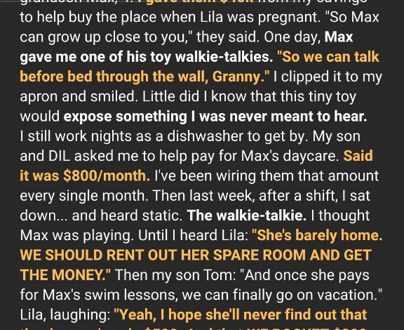 I raised my son alone and poured every part of myself into him — even the retirement savings that were supposed to protect my future. But a simple toy walkie-talkie my grandson gave me exposed a truth I never could’ve imagined: all my sacrifices meant next to nothing to the man I had devoted my whole life to. Any mother who has given until she’s empty needs to hear this. You spend decades giving, assuming…