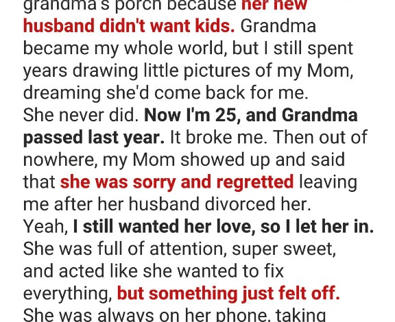 For two decades, I carried the image of the mother who walked away from me. I drew her face over and over as a child, hoping that someday she’d return and make things right. When she finally did, I thought it was a second chance at healing. Instead, I learned that some love arrives with conditions—and some doors are better left closed. That day is still burned into my memory, even after twenty years. I…