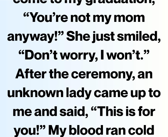 I told my stepmom not to come to my graduation. The words slipped out before I could stop them: “You’re not my mom anyway!” She froze, dish towel still in hand. For a long, suspended moment, I expected anger, or hurt, or tears. Instead, she gave me the smallest, gentlest smile. “Don’t worry,” she said quietly. “I won’t.” I thought I’d feel relief. Instead, a hollow ache settled in my chest, the kind you can’t…
