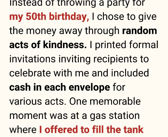 Most people celebrate their 50th birthday with a party, a fancy dinner, or a big gathering of friends. But as my milestone approached, something inside me wanted to do the opposite. For illustrative purposes only Instead of spending money on a celebration for myself, I decided to celebrate others. I had formal invitations printed—real, elegant invitations with gold accents and graceful lettering—“inviting” the recipient to celebrate my birthday with me. Inside each envelope, I tucked…