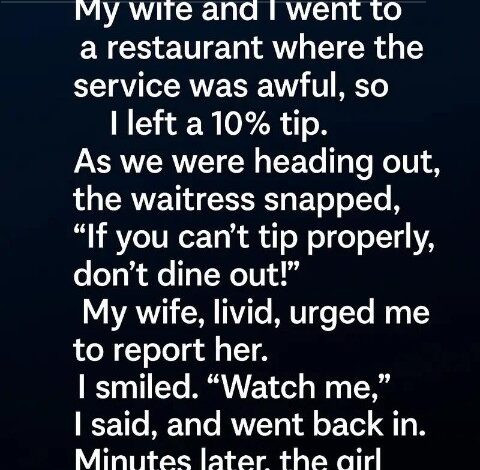 My wife and I were dining out one evening when it became obvious the restaurant staff was overwhelmed. Even so, when we finished our meal, I left a modest 10% tip. As we were heading toward the exit, the waitress called out sharply behind us: “If you can’t leave a real tip, you shouldn’t eat out!” My wife immediately bristled. She told me I needed to report her to management. But instead of reacting, I…
