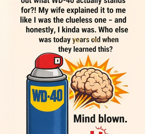 Almost everyone has a can of WD-40 nearby. It lives in garages, under sinks, inside toolboxes—always ready to stop a squeak or loosen something that hasn’t budged in years. The blue-and-yellow can is so familiar that its name barely registers anymore. And yet, for a product used by millions, most people have no idea what “WD-40” actually means. The question usually pops up during an ordinary frustration. A rusted bolt won’t turn. A hose nozzle is frozen in place. You spray WD-40, watch the problem disappear, and suddenly wonder: what does that name even stand…